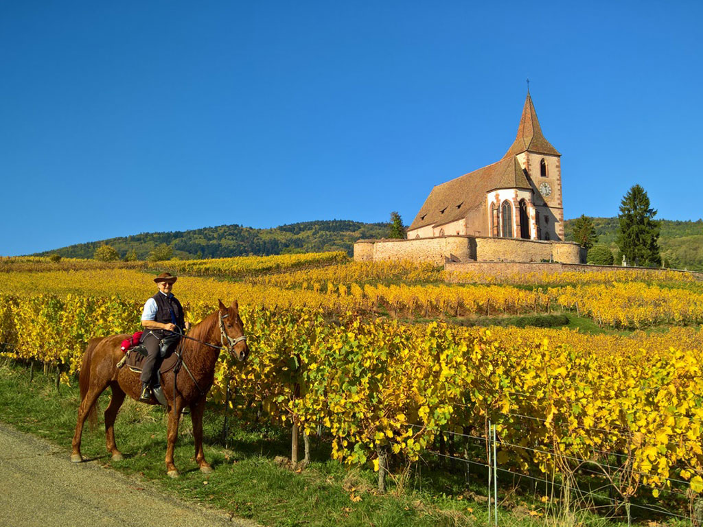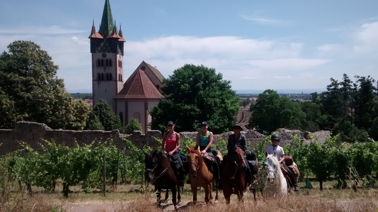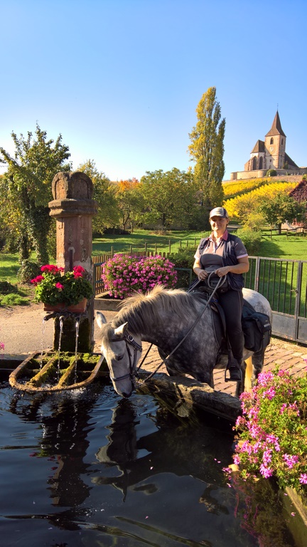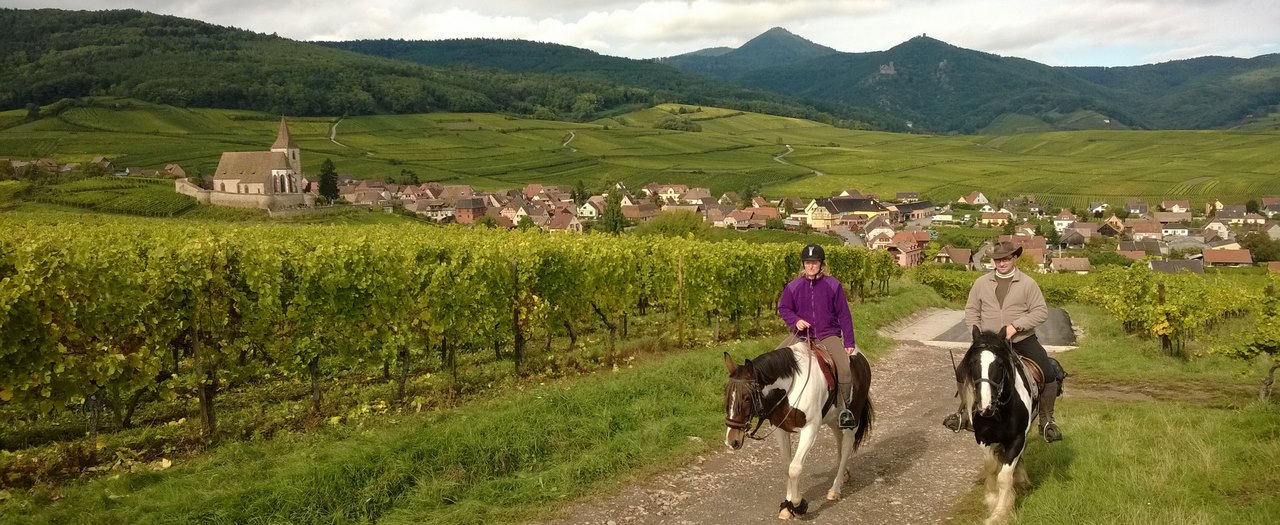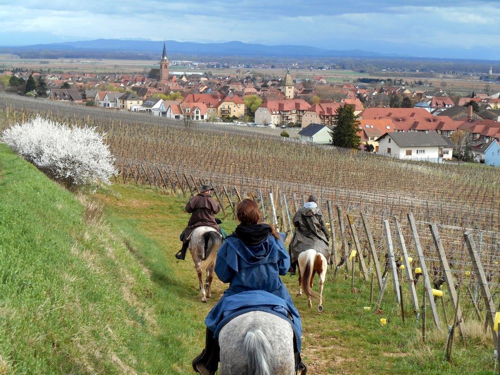 Vous aurez l’occasion de traverser les plus beaux villages d’Alsace (Riquewihr, Eguisheim, Ammerschwihr, Bergheim…) avec leurs maisons à colombages abondamment fleuries et les jolies fontaines en grès toujours bienvenues pour abreuver les chevaux. N’hésitez pas à vous arrêter faire des dégustations chez les viticulteurs !
