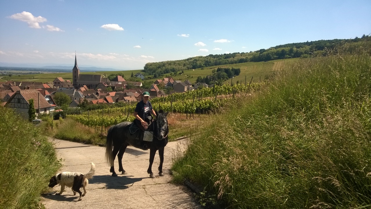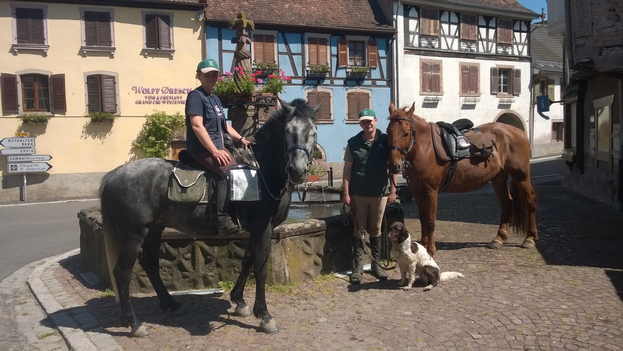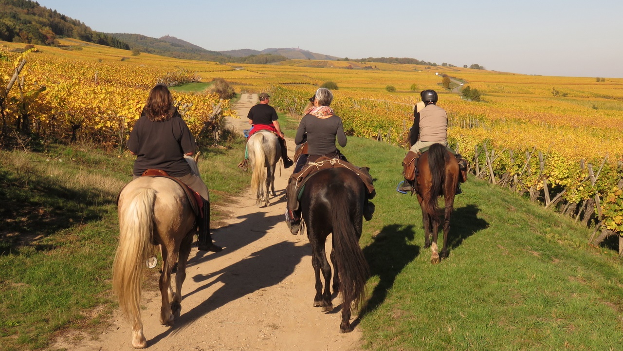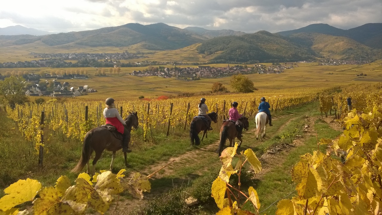 Vous aurez l’occasion de traverser les plus beaux villages d’Alsace (Riquewihr, Eguisheim, Ammerschwihr, Bergheim…) avec leurs maisons à colombages abondamment fleuries et les jolies fontaines en grès toujours bienvenues pour abreuver les chevaux. N’hésitez pas à vous arrêter faire des dégustations chez les viticulteurs !