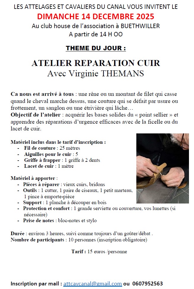 LES ATTELAGES ET CAVALIERS DU CANAL VOUS INVITENT LE DIMANCHE 14 DECEMBRE 2025 Au club house de l’association à BUETHWILLER A partir de 14 H OO THEME DU JOUR : […]